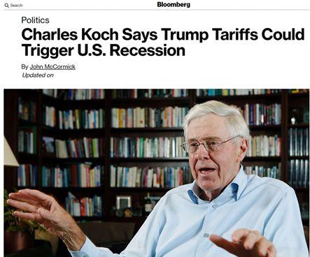 可隨著之后特朗普對(duì)中國等國發(fā)動(dòng)貿(mào)易戰(zhàn)的行為,以及相關(guān)惡果的逐漸顯現(xiàn),科赫家族的最新表態(tài)也與今年1月的言論形成了鮮明的對(duì)比。
