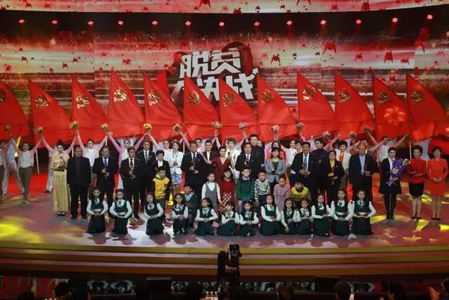 此外,本場晚會集脫貧攻堅(jiān)這一國家戰(zhàn)略與個人奉獻(xiàn)于一身,融時代主旋律與家庭真情為一體,以特約記者和廣電全媒體團(tuán)共同朗誦的主題詩《我們一起去扶貧》開場,獲獎的十大扶貧人物和軍旅歌手李丹陽共同演唱的《脫貧大決戰(zhàn)》主題曲《一個都不能少》收官。此外,晚會還邀請了奮戰(zhàn)在脫貧一線的第一書記的孩子們表演《天之大》,扶貧人物親友團(tuán)、扶貧志愿者方陣,參加晚會特定環(huán)節(jié)的互動演出。