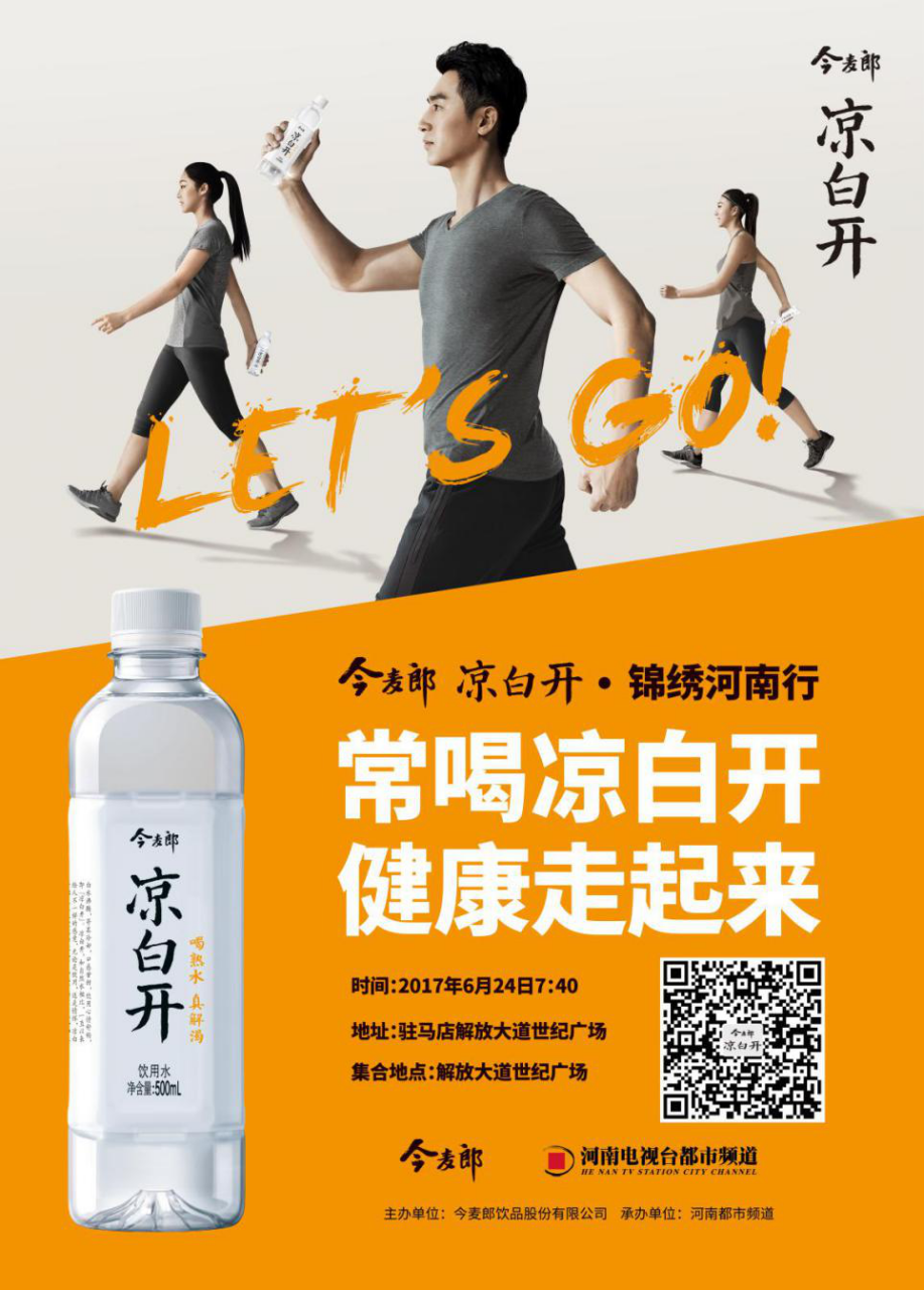 本次活動由河南電視臺都市頻道、今麥郎飲品股份有限公司主辦,計劃走遍開封,許昌,平頂山,洛陽,鄭州等河南的10座文化名城,“喝熟水 真解渴”6月24,我們在天地之“中”駐馬店等你一起“錦繡河南行”。