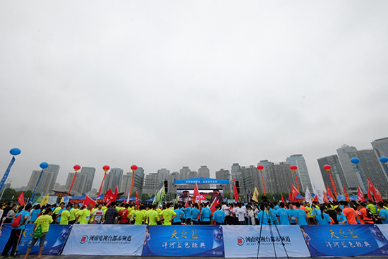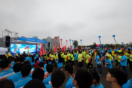 河南省環(huán)保廳、鄭州市環(huán)保局等單位的同志,更是一大早就來到了活動現(xiàn)場。雖然隨時可能下雨,但大家伙兒的熱情高漲,不等我們招呼,自己就做起了熱身。