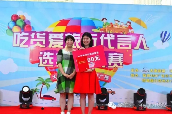 獲得第一名的選手成功簽約《吃貨愛旅行》成為代言人,由河南經(jīng)濟(jì)廣播副總監(jiān)欣悅女士上臺(tái)進(jìn)行了頒獎(jiǎng)儀式。