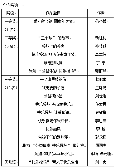 “快樂操場(chǎng)” 征文獲獎(jiǎng)名單出爐