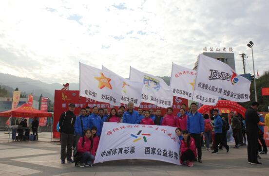 在眾多代表隊中有一只團隊頗具特色,那就是由80人組成的“信陽體彩優(yōu)秀業(yè)主代表隊”,身著藍色或紅色運動裝,高舉印有體彩各類玩法和公益宣傳的6面大旗,在人群中極為亮眼,展示了體彩人的良好形象。為了讓廣大群眾了解體彩公益,體彩信陽分中心還在開幕儀式現(xiàn)場設置了大型噴繪展板,展示了近15年來信陽體彩造福老區(qū)、推動我市體育事業(yè)和公益事業(yè)前行所做出的貢獻,以及體彩公益金的主要用途,詮釋了購買體育彩票的社會價值。