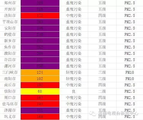 從即時(shí)起至16日,鶴壁、濮陽(yáng)、鄭州、開(kāi)封等15個(gè)省轄市和鞏義、蘭考、汝州、鄧州、永城、固始、鹿邑、新蔡等8個(gè)省直管縣(市)啟動(dòng)不低于黃色預(yù)警的重污染天氣應(yīng)急響應(yīng)。