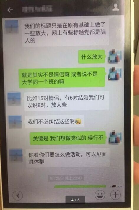 面對記者對“一個班15對情侶”提出的諸多疑問,對方直接回答,“媒體報道說有,就一定是這么回事?!薄拔覀儾槐卦偌m結(jié)這些。”他后來承認有些標題在原有的基礎上做了一些放大,“比如15對情侶,有6對結(jié)婚我們可以說8對,放大些。”