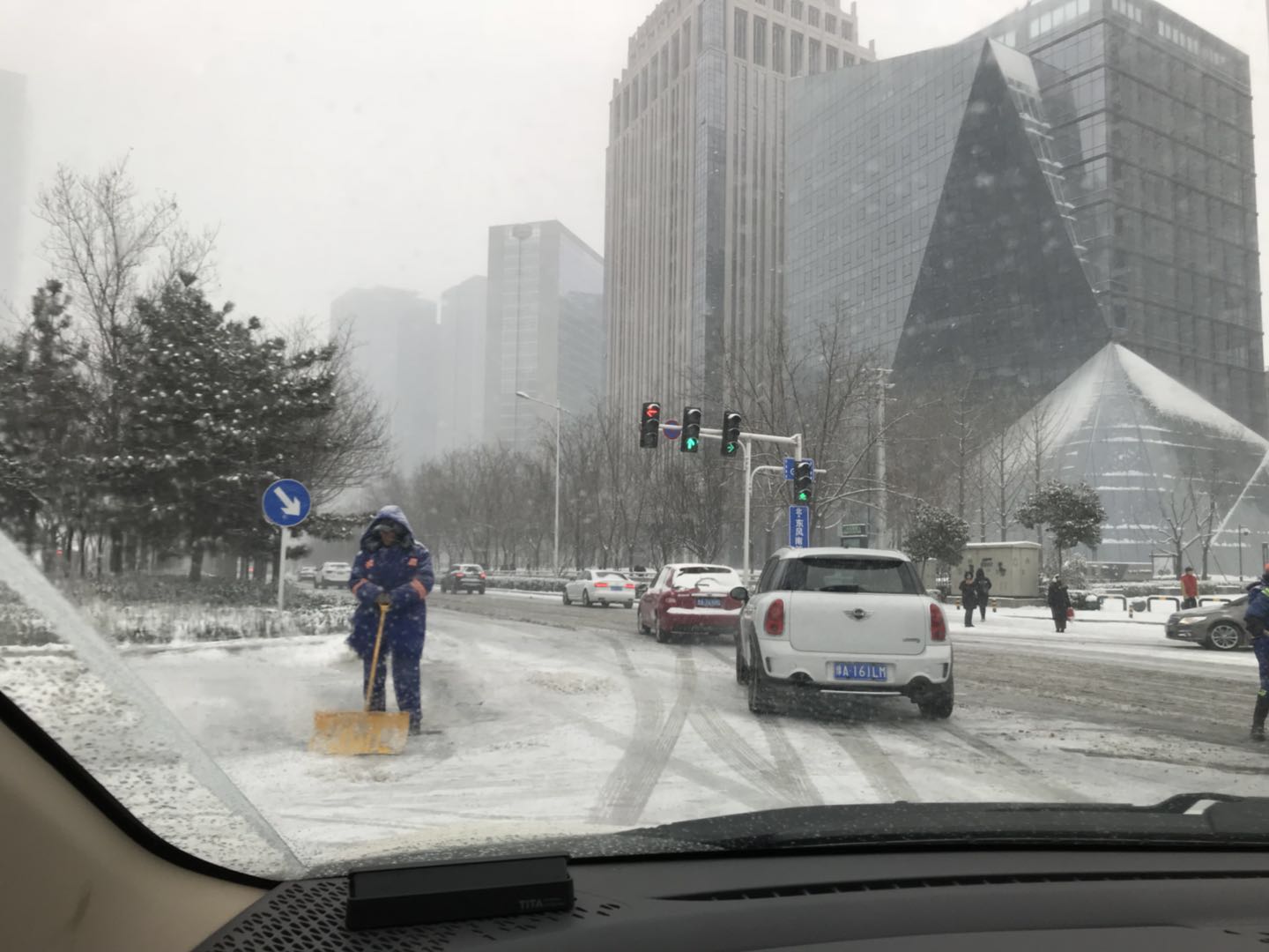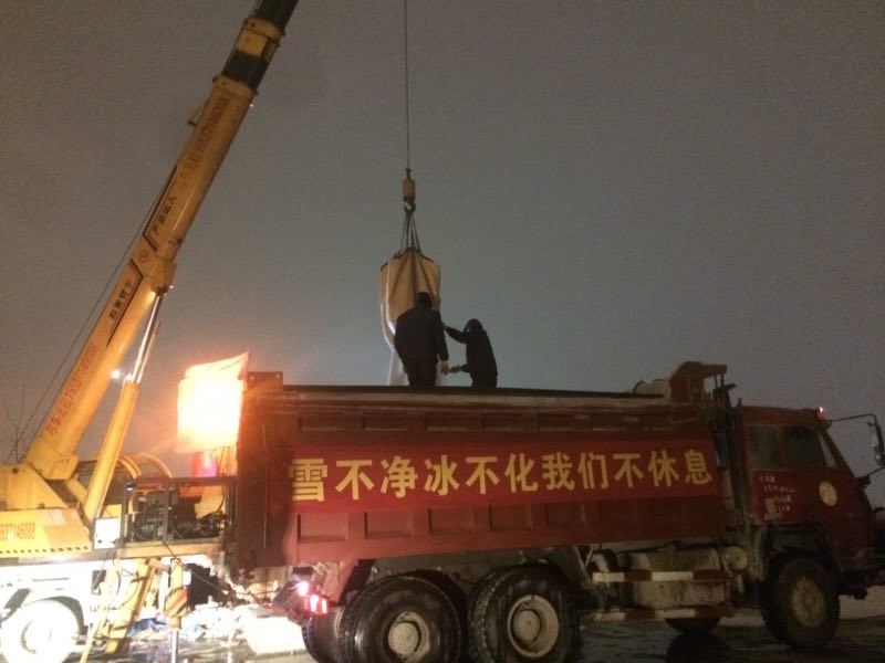 鄭州機場緊急啟動除雪保障預(yù)案,機場各崗位徹夜未眠連續(xù)工作,對飛機跑道、滑行道、停機坪和對機場地面交通道路進行撒鹽、掃雪等一系列除冰雪保障工作,以保障廣大旅客安全出行。只見大的除冰機上寫著:雪不凈冰不化我們不休息!