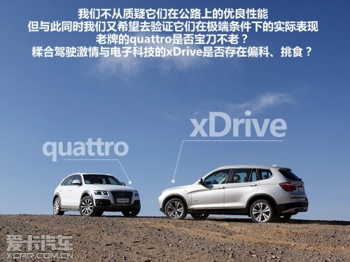 我們不從質疑它們在公路性能上的優(yōu)良表現,但與此同時我們又很希望去驗證它們在極端條件下的實際表現,于是,在本期的四驅測試中,我們挑選了目前市場上最具代表性的兩款車,在荒蕪的沙地上來一次爬坡測試。到底看看在公路上“生龍活虎”的渦輪增壓發(fā)動機在越野路況下的實際表現到底如何?