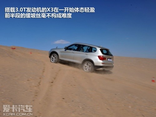 或許是奧迪Q5完成測試的過程比較順利,我們對接下來即將登場的寶馬X3也普遍比較看好,這或許就是思維慣性帶來的固定套路吧。然而在實地測試過程中,這臺X3攀爬沙丘的過程卻沒有表現出它在公路上所煥發(fā)出的霸氣。400牛·米的最大扭矩在城市道路中,甚至在高速公路上都是無與倫比的,但移步至眼前狂風大作的沙丘,這400?!っ椎呐ぞ貏t像是心有余而力不足的悲情英雄。