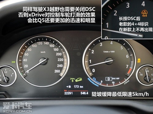 嘗試了幾次之后,其結果都是因為這種看似顯得有些尷尬的郁悶一直在左右著我們,并最終以失敗告終。經過不懈的努力,寶馬X3還是艱難的成功登頂,雖然過程依舊是上述的尷尬窘境在重復上演,但是在車輛還未完全失速的關鍵時刻果斷選擇一條沒有車轍的平坦線路,并保持一個穩(wěn)定的發(fā)動機轉速是最終令X3成功登頂的密鑰所在。