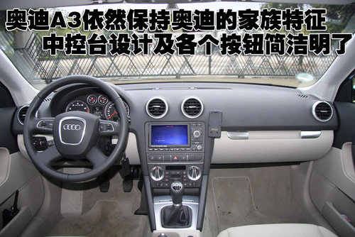 奧迪A3依然保持奧迪的家族特征,中控臺(tái)設(shè)計(jì)及各個(gè)按鈕簡(jiǎn)潔明了。其四輻式真皮方向盤配備集成控制按鈕,而白色冷光儀表盤突出視覺效果的同時(shí),又方便駕駛員讀取信息。