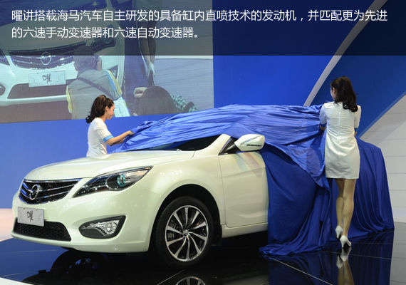 2012年4月23日,第十二屆北京國際車展于中國國際展覽中心盛大開幕。海馬汽車以其首款B級概念轎車“曜”領(lǐng)銜,攜全系精品車型在北京車展亮相。除B級概念轎車“曜”以外,剛剛上市的新福美來、新福美來VS,以及丘比特2012款和海馬騎士2012款,普力馬2012款、福美來CTCC賽車、福美來電動車和HM484Q-T(1.8T)發(fā)動機等均在本屆車展亮相。