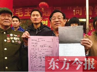 上午10時許,谷殿明和手下員工,向在場群眾展示了一份“戶口本”和一份“房產(chǎn)證”。打開“房產(chǎn)證”,持證人姓名一欄赫然填寫著“雷鋒”的名字,名下房產(chǎn)面積近200平方米。這張“房產(chǎn)證”并不是房管部門核發(fā),而是老谷特制的。去年學(xué)雷鋒日,谷殿明曾把雷鋒的戶口從湖南省長沙市望城縣遷到了這里,今年,他索性給雷鋒找了家,辦了“房產(chǎn)證”。