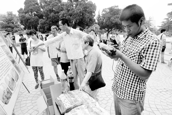 昨天上午,紫荊廣場,在公安機關(guān)繳獲的假飲料、糖貨展臺前,不少市民拿著假冒的可樂翻來覆去地看,想找出破綻。