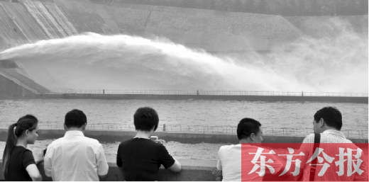昨天,東方今報(bào)記者在濟(jì)源市小浪底庫區(qū)看到,9時(shí)一到,一條水龍從小浪底大壩口噴涌而出,驚濤拍岸。河水墜入河道濺起的細(xì)小水滴,撲打在附近游人的臉上,遠(yuǎn)遠(yuǎn)地就能感受到陣陣涼意。