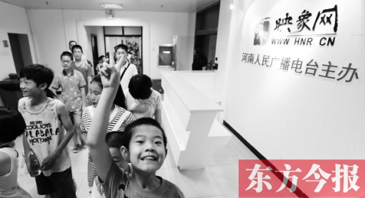 13日上午9時,河南廣電全媒體的小記者們來到映象網,剛走進大門,大家就被映象網的工作環(huán)境“鎮(zhèn)”住了,一排排嶄新的電腦,北面的墻上還在播放電視。