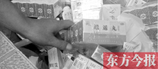 “這是治感冒的,這是治痛風(fēng)的……這還有膏藥、碘酒、酒精啥的?!敝芟壬灰恢附o東方今報(bào)記者看。