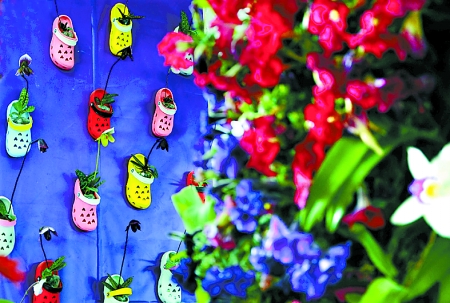 4月6日,“2012洛陽(yáng)·中國(guó)名花展”在洛陽(yáng)國(guó)家牡丹園開(kāi)展,15天的展期將展出91類(lèi)、200余種國(guó)內(nèi)珍奇名貴花卉。圖為展出的“仙履芳蹤”插花造型。 新華社發(fā)
