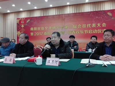 12月28日,2017南陽(yáng)(白象灣)新春歡樂(lè)節(jié)啟動(dòng)暨南陽(yáng)民俗文化研究會(huì)換屆大會(huì)在南陽(yáng)賓館成功舉行,該研究會(huì)聘請(qǐng)二月河、周同賓、聶振弢等人為顧問(wèn)。當(dāng)天,民俗協(xié)會(huì)會(huì)員代表及多家省內(nèi)外新聞媒體和自媒體代表一百多人參加,見(jiàn)證了南陽(yáng)(白象灣)新春歡樂(lè)節(jié)啟動(dòng)。