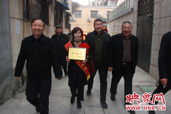 映象網(wǎng)訊 (記者 王文凱 通訊員 馮明獻(xiàn) 鄭鴻斌)“‘好媳婦’給俺兒媳婦,實至名歸!” 1月10日,高秀向的婆婆蔣淑英看著懸掛于門額的“好媳婦”牌匾說。當(dāng)日,滎陽京城辦曹李村首屆“百佳”評選結(jié)果出爐,高秀向等82名村民分別榮膺優(yōu)秀共產(chǎn)黨員、好媳婦、好婆婆、好青年。