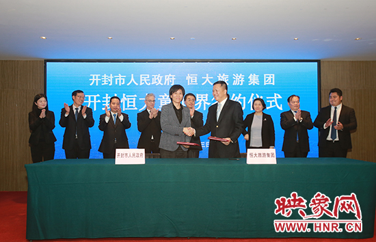 當日下午,在河南省委常委、常務副省長翁杰明和恒大集團董事局主席許家印等嘉賓見證下,開封市長侯紅和恒大集團常務副總裁兼恒大旅游集團董事長肖恩代表雙方在合作協(xié)議書上簽字。