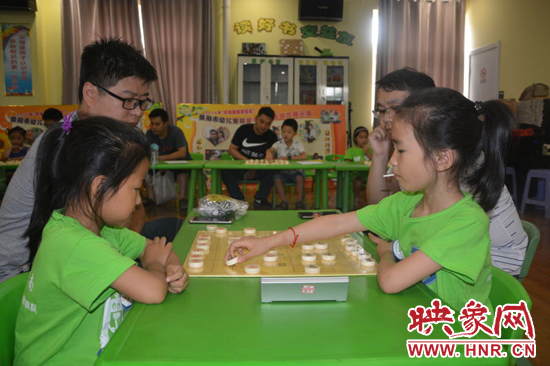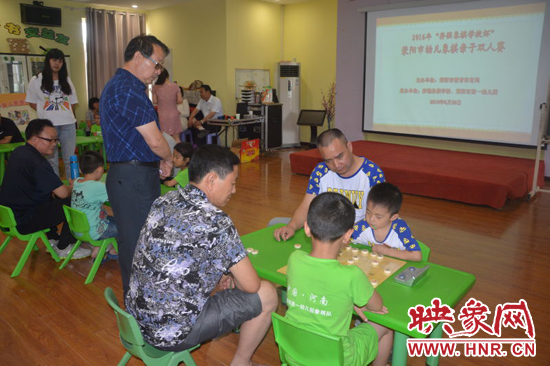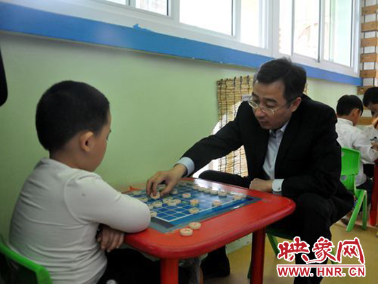 滎陽(yáng)市長(zhǎng)王新亭與孩子一起下象棋