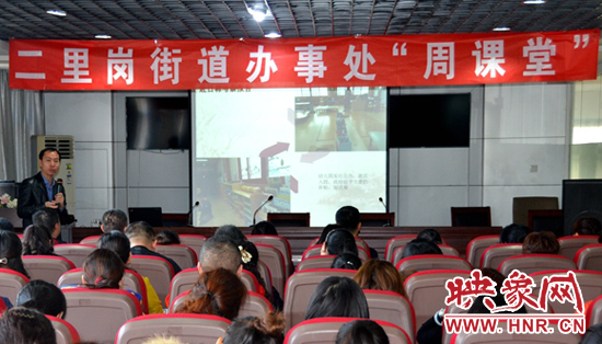 二里崗辦事處把開設(shè)“周課堂、月講堂”作為文明創(chuàng)建和干部隊(duì)伍教育的重要載體,旨在提升黨員干部群眾業(yè)務(wù)素質(zhì),增強(qiáng)為民服務(wù)水平?!爸苷n堂”以內(nèi)部交流、業(yè)務(wù)學(xué)習(xí)為主,由街道領(lǐng)導(dǎo)班子成員、中層干部、業(yè)務(wù)骨干輪流授課。“月講堂”邀請(qǐng)專家學(xué)者、“兩代表一委員”等專業(yè)人士就經(jīng)濟(jì)、文化、健康、教育等各領(lǐng)域開展講座,提升黨員干部群眾的整體素質(zhì)和文化素養(yǎng)。
