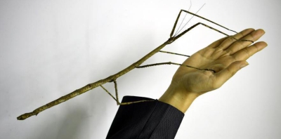 成都華希昆蟲博物館里的一只中國巨型竹節(jié)蟲是吉尼斯世界紀錄“最大昆蟲”保持者,該蟲的第一顆卵于近期成功孵化出幼蟲。