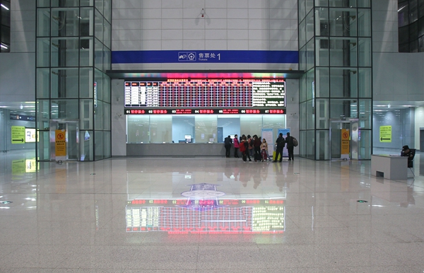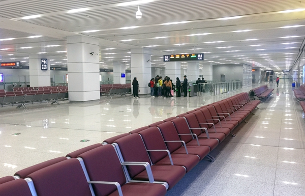 鄭機城鐵機場站候車大廳,空蕩的大廳內(nèi)只有少數(shù)乘客