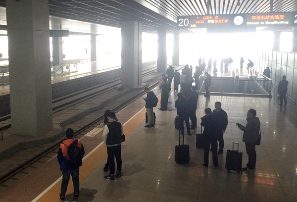可乘坐613名乘客的班車,在鄭州東站發(fā)往新鄭機場站的站臺上,卻只有很少的乘客在等待