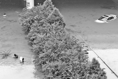 7月9日下午3點,高速新鄉(xiāng)東站立交橋下水深沒胸,并有轎車被淹沒在水中。記者洪波攝影
