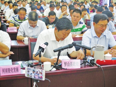 在昨天的約談會上,羅山縣委書記許遠福顯得異常醒目,他是此次約談會中,唯一一名作為約談代表發(fā)言的地方政府負責(zé)人,并進行表態(tài)性發(fā)言。