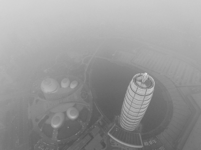 昨日(12月18日)中午,記者利用無(wú)人機(jī)爬升到最高升限500米仍舊沒能突破霧霾層,鏡頭中的“大玉米”籠罩在一片混沌當(dāng)中。