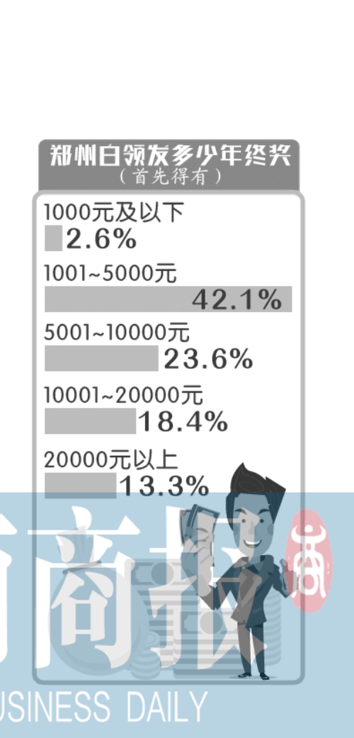 近日,智聯(lián)招聘網(wǎng)站發(fā)布調(diào)查顯示,參與調(diào)查的鄭州白領(lǐng)有超四成表示能拿到2016年年終獎(jiǎng),這其中近五成表示年終獎(jiǎng)不足5000元,而孝敬長輩和還貸款是年終獎(jiǎng)主要使用方式。
