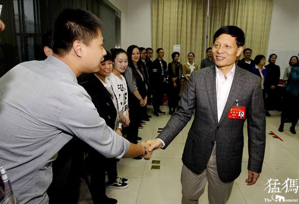 “你們的隊(duì)伍很龐大,每個(gè)人都要握到,一個(gè)也不能落下?!敝x伏瞻親切地說(shuō)。