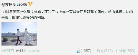 人民網(wǎng)北京7月15日電 古巨基和助理女友陳英雪的20年“地下情”終于傳出喜訊,今日(7月15日),古巨基發(fā)布微博,公布了自己與助理女友的結(jié)婚照,并感嘆道:“從94年我第一張唱片開始,在我工作上你一直緊守在照顧我的崗位。然而此后,你的未來,就讓我來好好的照顧。”