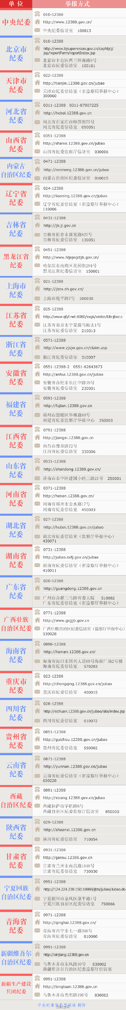 附:中紀(jì)委公布各地紀(jì)委聯(lián)系方式