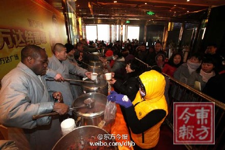 今早9點,大學(xué)路二七萬達,聚集上千人,少林寺免費施粥,三天熬制兩萬份。不少市民早上7點來排隊,提著餐盒保溫桶大碗,現(xiàn)發(fā)現(xiàn)喝。大早上一碗熱乎乎的臘八粥下肚,透心暖?,F(xiàn)場人員還在源源不斷增加中。今天你喝臘八粥了嗎?