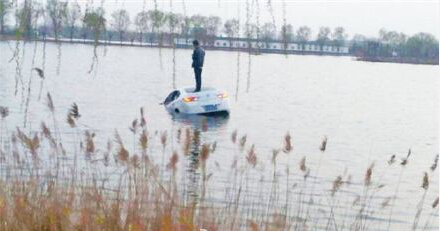 10、濮陽(yáng)轎車(chē)落水車(chē)主站車(chē)頂?shù)染?倆保安跳湖救人!