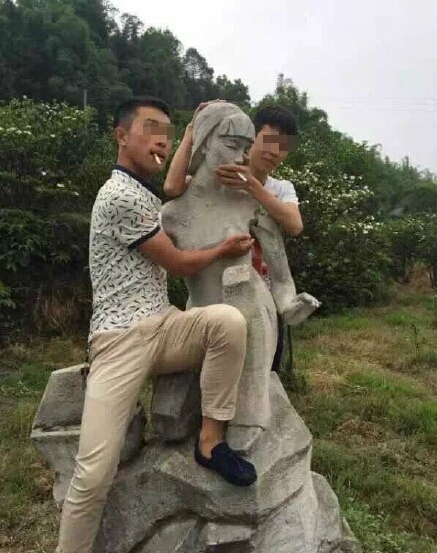 四川宜賓趙場佛現(xiàn)山景區(qū)花開正艷,卻出現(xiàn)了與美景相悖的不文明行為。兩男子近日對一婦女雕像又是摟抱又是摸胸。據(jù)了解,雕像是兩年前計生文化進景區(qū)時設(shè)置的。目前,拍攝時間和兩男子身份尚不明確??达L(fēng)景還是煞風(fēng)景?