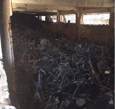 今天凌晨1點(diǎn)半左右,鄭州二七區(qū)新浦街5號(hào)院的電動(dòng)車棚突發(fā)火災(zāi),近百輛電動(dòng)車被燒成骨架。據(jù)目擊者稱,電動(dòng)車充電時(shí)爆炸引發(fā)火災(zāi)。小區(qū)居民稱,小區(qū)消防通道不暢,消防栓竟然沒有一滴水,耽誤了最佳撲救時(shí)間。