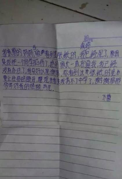 (湖南綏寧小學(xué)生跳樓身亡,遺書稱遭同學(xué)家長逼迫,一張疑似絕筆信的照片在網(wǎng)上流傳,內(nèi)容為一名學(xué)生向媽媽臨終告別,后面還附有多張醫(yī)院搶救照,遺書的作者是湖南綏寧縣長鋪二小5年級(jí)的一名學(xué)生,目前已經(jīng)跳樓身亡。)