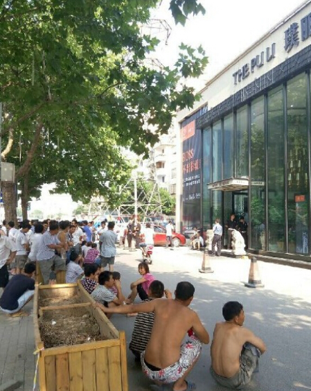 7月30日早上,鄭州黃河路與經(jīng)二路口,一百多名農(nóng)民工圍在璞麗中心售樓部門前討薪。據(jù)了解,這些民工大多來自河南,還有陜西、四川、云南等地。他們說,從春節(jié)后到現(xiàn)在的半年時(shí)間里,沒有發(fā)過工資?,F(xiàn)在工地已經(jīng)停工20多天。