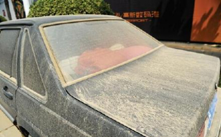 9、鄭州市民做揚(yáng)塵實(shí)驗(yàn) 轎車停路邊三天落滿黃土