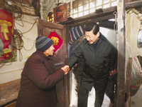 12月29日至30日,中共中央總書記、中央軍委主席習近平在河北省阜平縣看望慰問困難群眾。這是習近平在龍泉關鎮(zhèn)駱駝灣村到困難群眾唐榮斌家看望。 新華社記者 蘭紅光攝