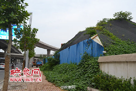 航海路西三環(huán)東北角,有一高約5米的垃圾土堆,南側(cè)用施工擋板遮擋,頂部被綠藤覆蓋,遠(yuǎn)看像一座假山。一刮風(fēng)導(dǎo)致附近小區(qū)塵土飛揚(yáng)、蚊蠅亂飛,環(huán)境惡劣。據(jù)悉,該土堆兩年無(wú)人清理,居民認(rèn)為影響鄭州形象。