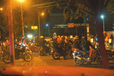 8月27日凌晨5點(diǎn)多,天未亮,數(shù)百輛摩托車開(kāi)著車燈,集結(jié)在格爾木市東西兩側(cè)的交通要道。這些摩托車每輛少則載著1人,多則4人,他們雙手提著塑料桶擠在后座上,集結(jié)完畢后朝格爾木市周邊的草原進(jìn)發(fā),目標(biāo)是野生黑枸杞。