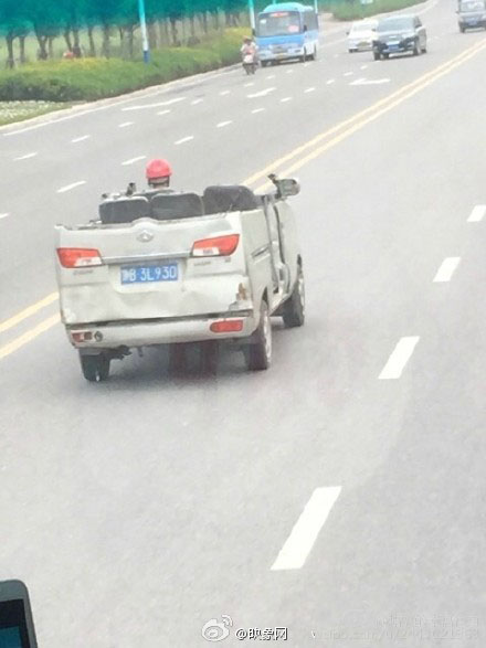 2、面包車改敞篷車 司機戴頭盔上路