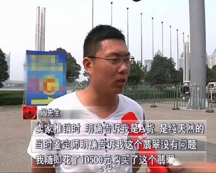 鄭州市民閻先生花了10500元在珠寶展銷會上買了一塊號稱A貨的翡翠,然而,鑒定結果卻顯示他買的其實是劣質(zhì)的B貨,也就是強酸腐蝕后人工加工的翡翠。目前,該展位賣家不見蹤影,主辦方也稱自己無責任。