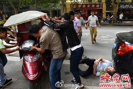 5、鄭能量!老人駕車側(cè)翻左腿被壓 市民合力救人