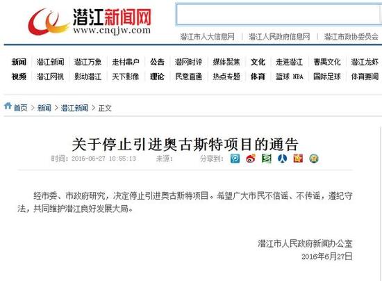 2016年6月27日上午,潛江市部分人員違反國家法律法規(guī),在未向有關(guān)部門提出申請并獲得許可的情況下,非法采取利用微信群傳播請愿書,擅自上街游行,聚集請愿等方式,要求政府停止引進奧古斯特項目,擾亂社會公共秩序,造成了很壞的社會影響。